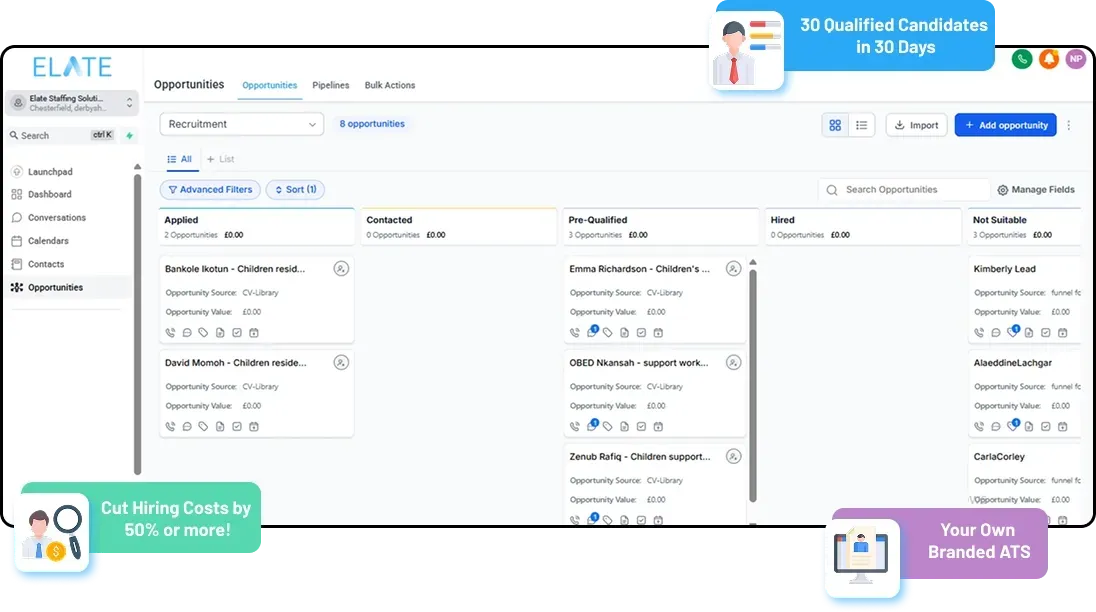 Solution: Elate introduced an automated, AI-powered recruitment workflow that targeted local candidates across multiple channels. The system pre-screened applicants based on key criteria, dramatically reducing manual admin and allowing hiring managers to focus on final-stage interviews.