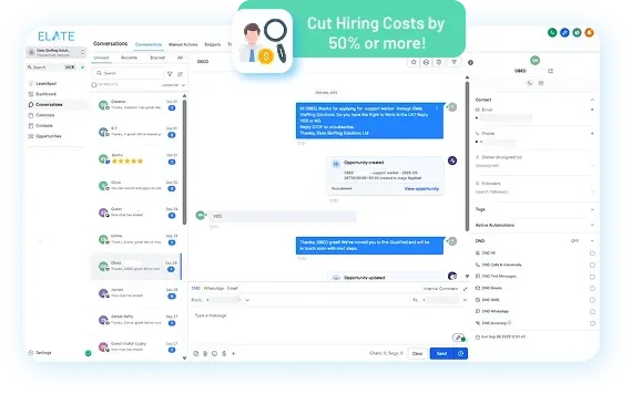 Conversation History – Every reply logged on candidate profile.